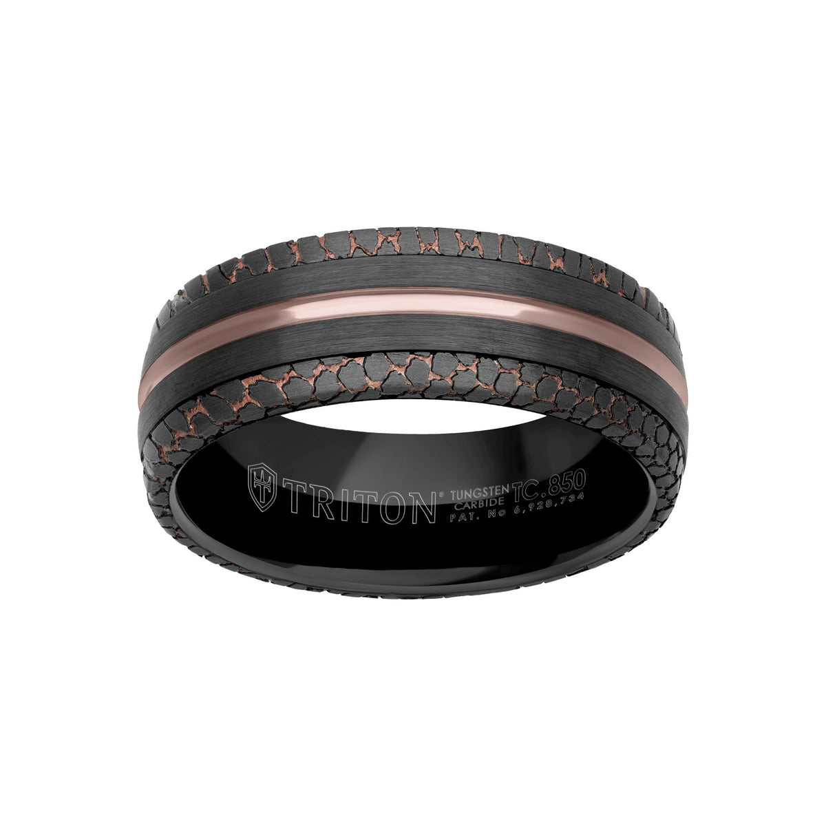 Triton’s Tungsten Carbide TC.850™ material is a uniquely forged metal that is perfect for a man’s active lifestyle. It’s durable, scratch-resistant and will maintain its finish over time with normal use. Triton’s Tungsten Carbide TC.850™ is a patented formula consisting of approximately 85% Tungsten Carbide, yielding a strong, heavyweight, hypoallergenic and tarnish resistant material.