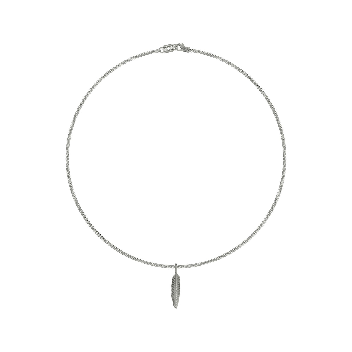 22" sterling silver necklace features a detailed 29MM feather pendant finished in silver rhodium. Sleek, symbolic, and designed for movement, it captures a sense of freedom and modern style—perfect for layering or solo wear.