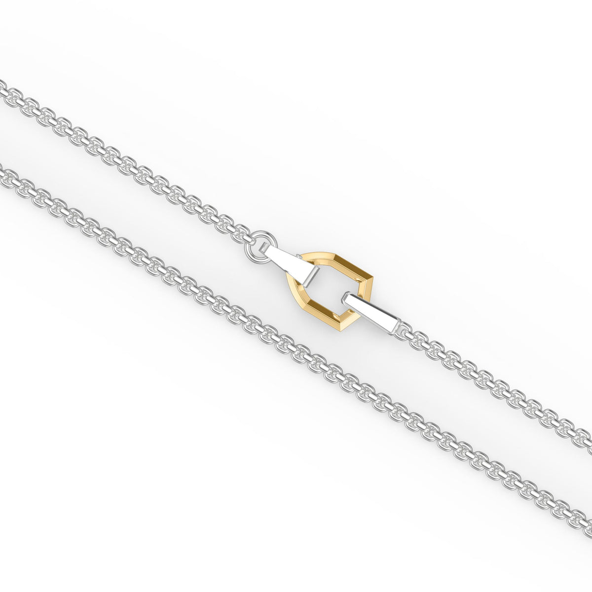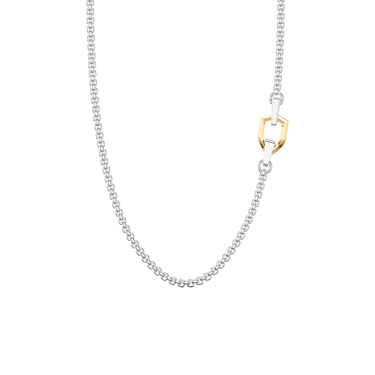 24" sterling silver box chain features Triton’s signature shield design with a bold gold-plated accent. Finished in silver rhodium, it blends contrast and craftsmanship for a standout look with everyday edge.The Triton Forever Fit Warranty™ celebrates the nature of change by offering a lifetime size exchange program to honor your evolution.