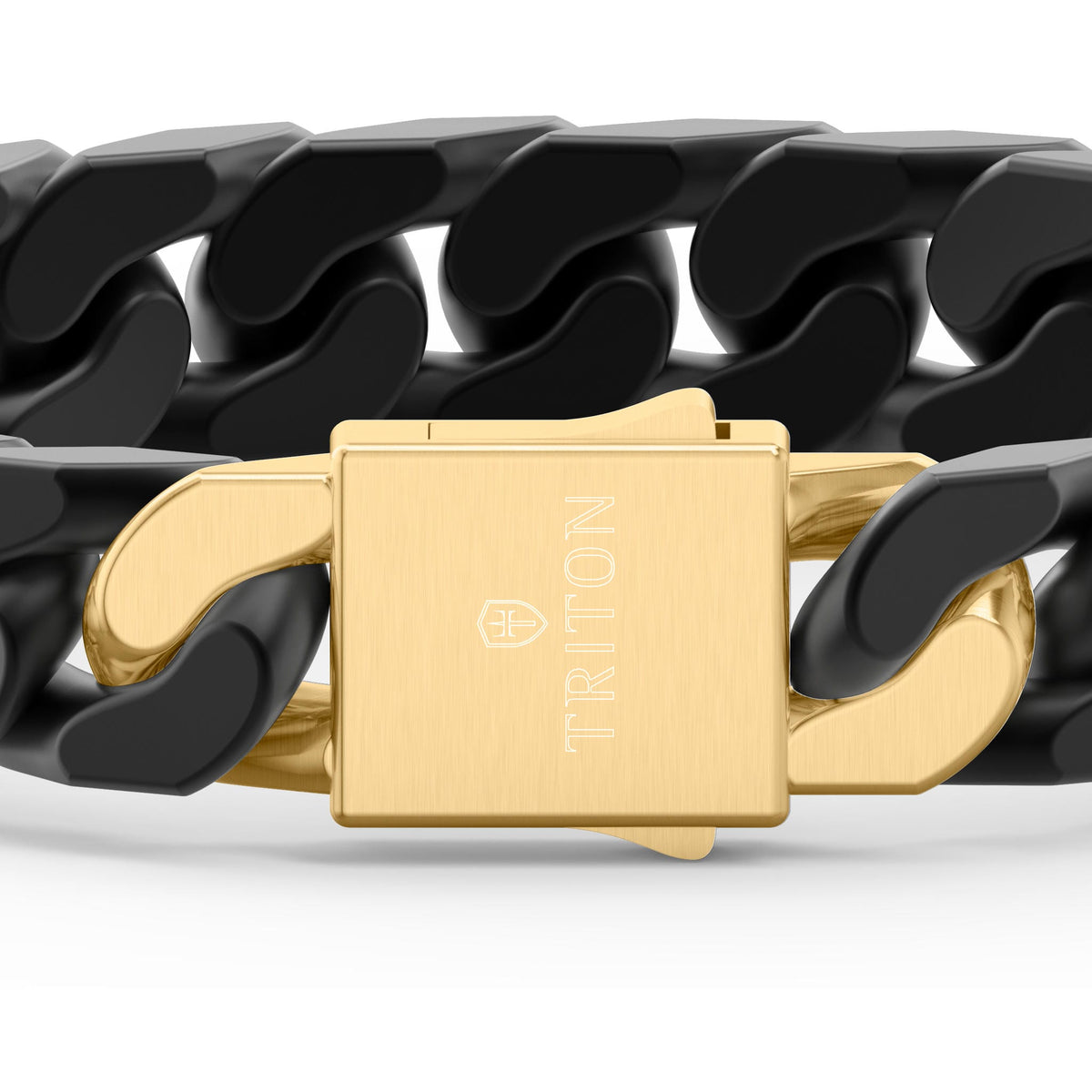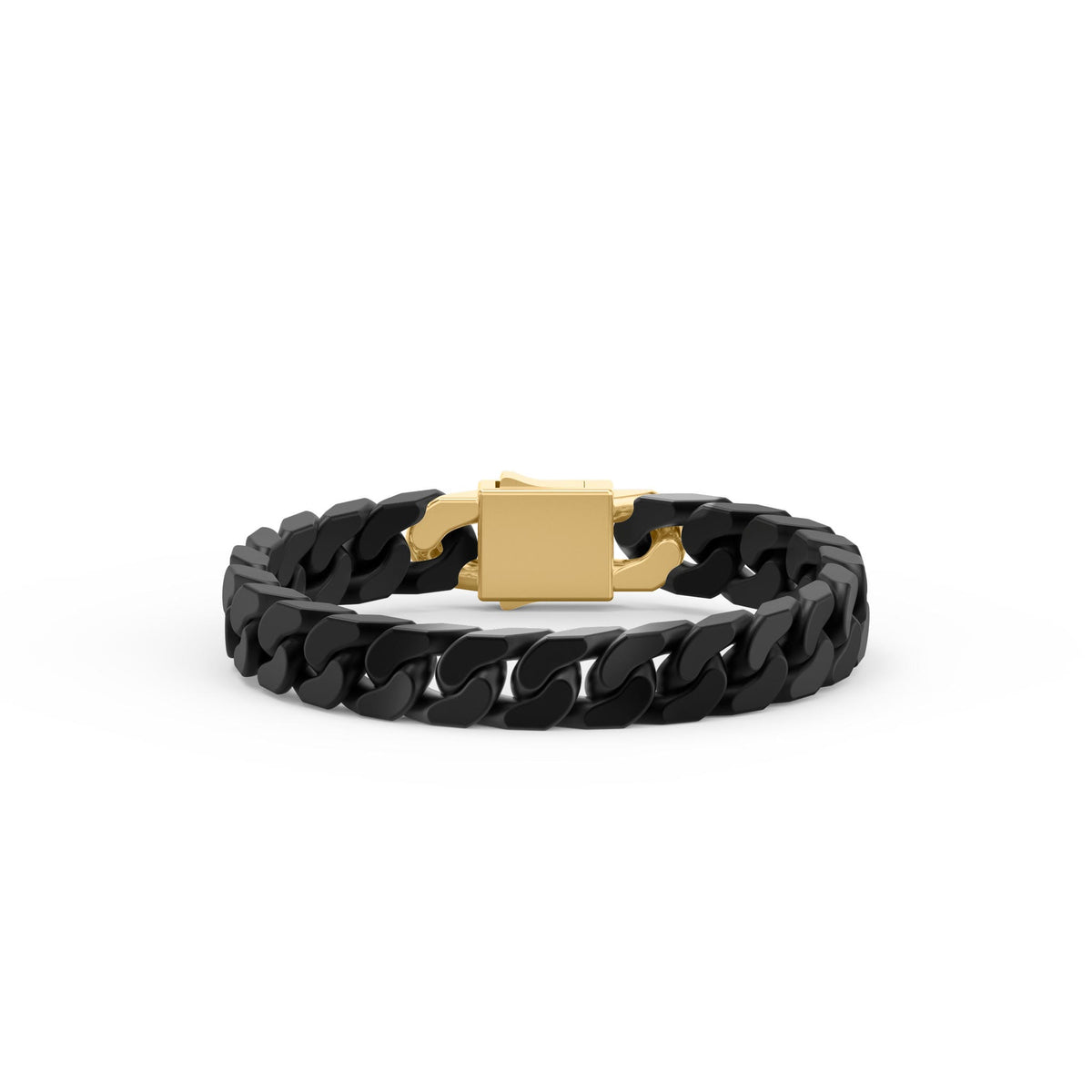 Bold 8" Cuban link bracelet features high-performance 10MM black ceramic links and a gold-plated sterling silver clasp. Lightweight, durable, and scratch-resistant—built for modern style with standout contrast and edge.The Triton Forever Fit Warranty™ celebrates the nature of change by offering a lifetime size exchange program to honor your evolution.