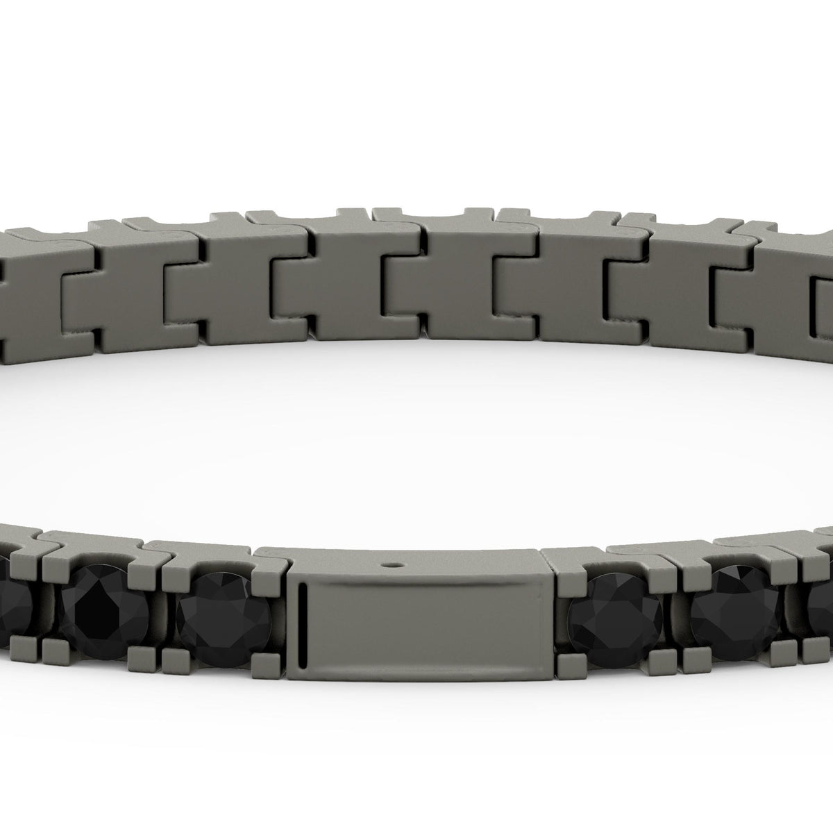 Engineered in matte gray titanium, this 8" bracelet showcases 40 black spinel in bold prong settings. Lightweight yet durable, it delivers understated luxury with edge—ideal for men who value modern materials and elevated design.The Triton Forever Fit Warranty™ celebrates the nature of change by offering a lifetime size exchange program to honor your evolution.