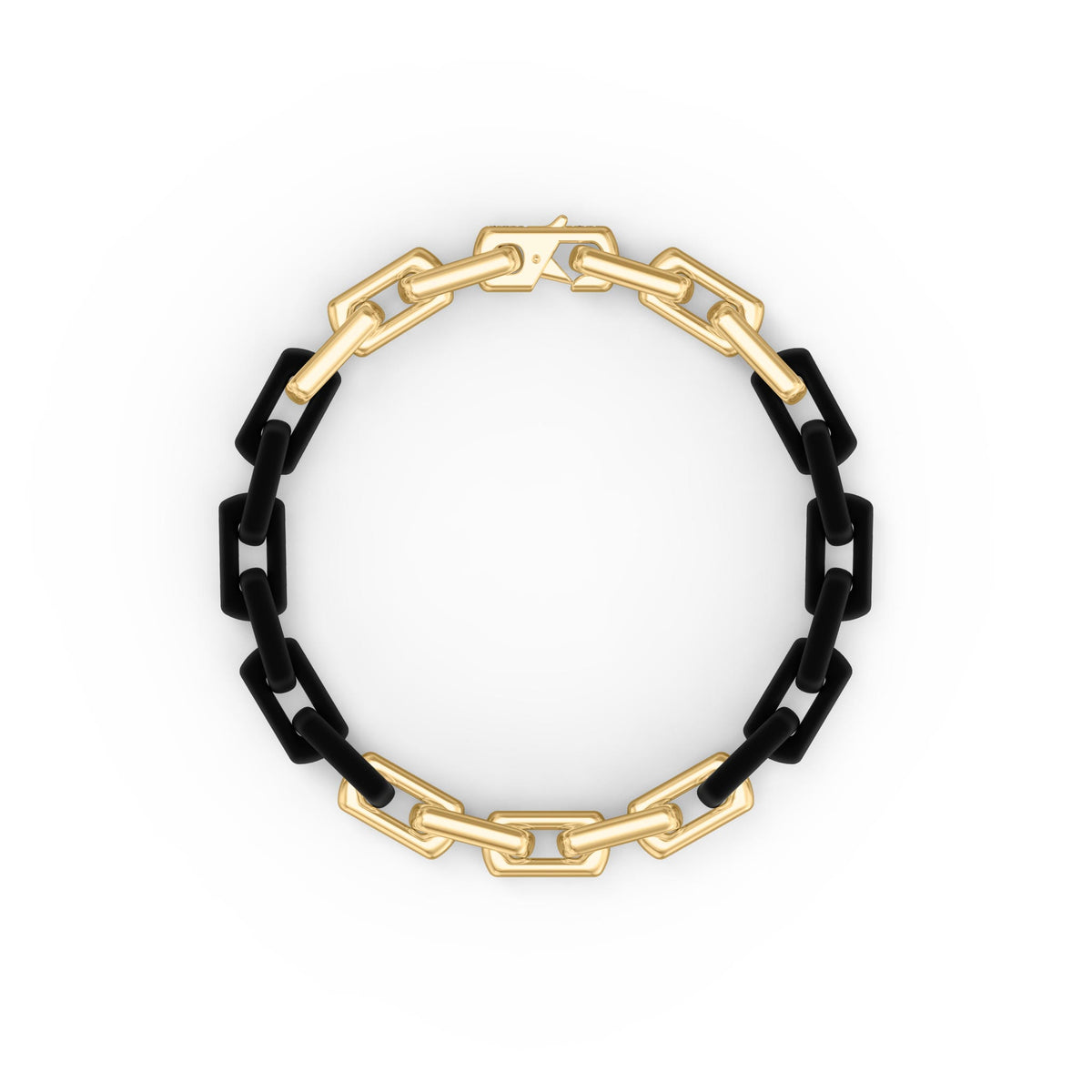 Bold 8" bracelet features oversized 9.5MM links in black PVD and 18K gold-plated silver. With polished and sandblasted finishes, it delivers high contrast and high impact for standout, fashion-forward style.The Triton Forever Fit Warranty™ celebrates the nature of change by offering a lifetime size exchange program to honor your evolution.