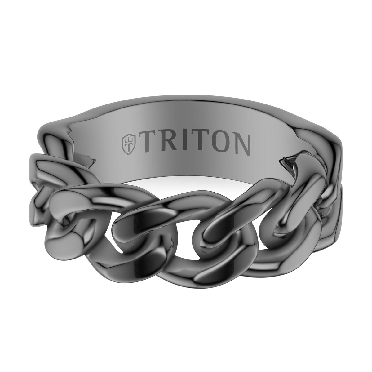 8MM curb link ring in sterling silver with polished black ruthenium finish. Bold, modern, and engineered for everyday style. A distinctive essential that blends rugged texture with refined attitude. Perfect for self-expression and daily wear. Available in Size 9, 10, 11The Triton Forever Fit Warranty™ celebrates the nature of change by offering a lifetime size exchange program to honor your evolution.