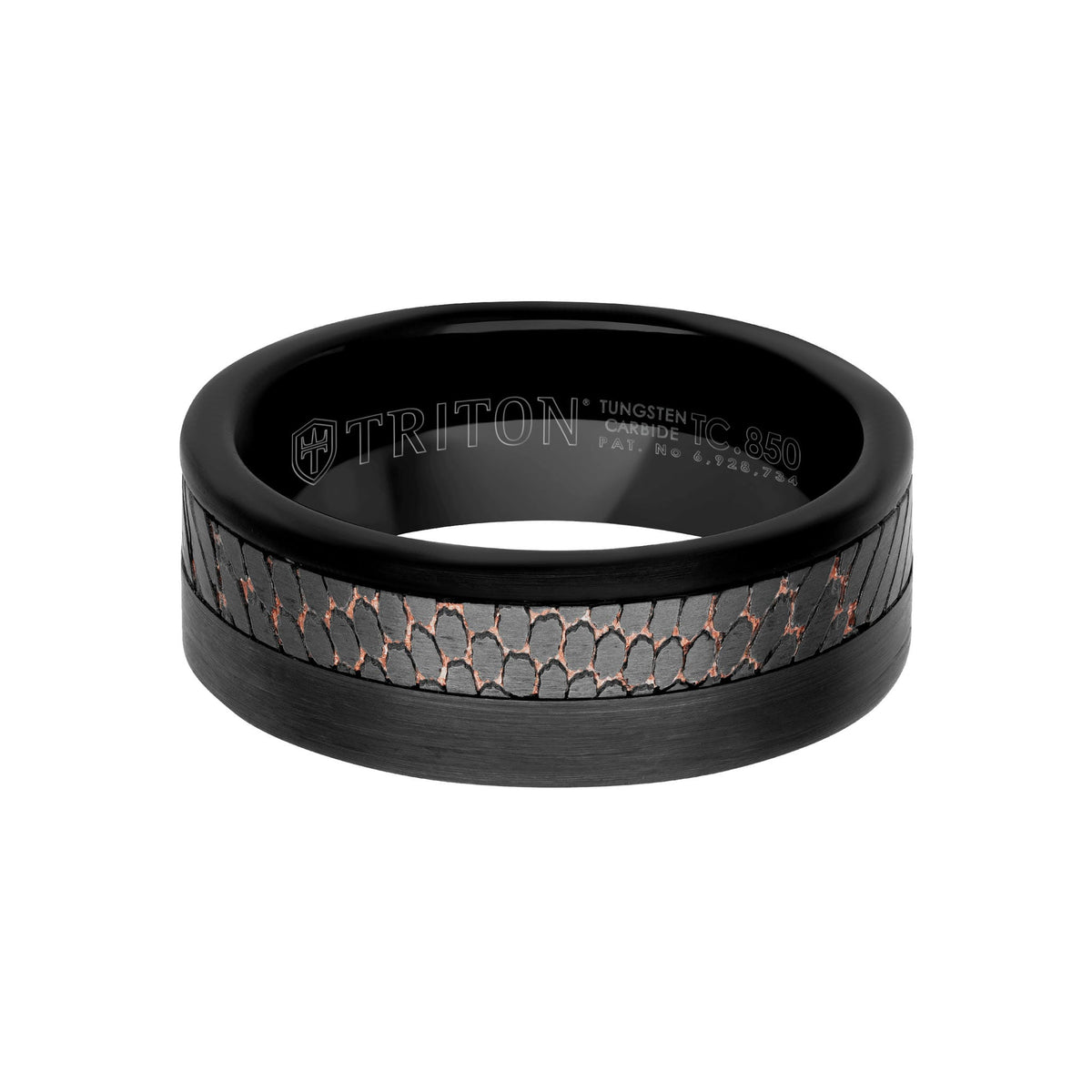 Triton’s Tungsten Carbide TC.850™ material is a uniquely forged metal that is perfect for a man’s active lifestyle. It’s durable, scratch-resistant and will maintain its finish over time with normal use. Triton’s Tungsten Carbide TC.850™ is a patented formula consisting of approximately 85% Tungsten Carbide, yielding a strong, heavyweight, hypoallergenic and tarnish resistant material.